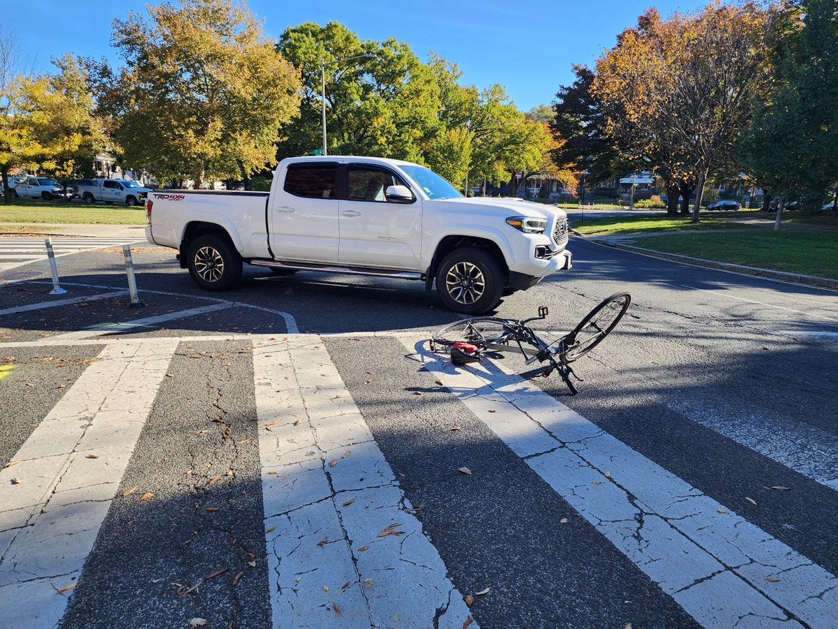 A cyclist traveling around Sherman Circle had been hit by a driver turning onto the Circle from Illinois Ave. Fortunately, the rider escaped with relatively minor injuries, but it was a scary incident and a stark reminder of the ongoing dangers to vulnerable road users here.